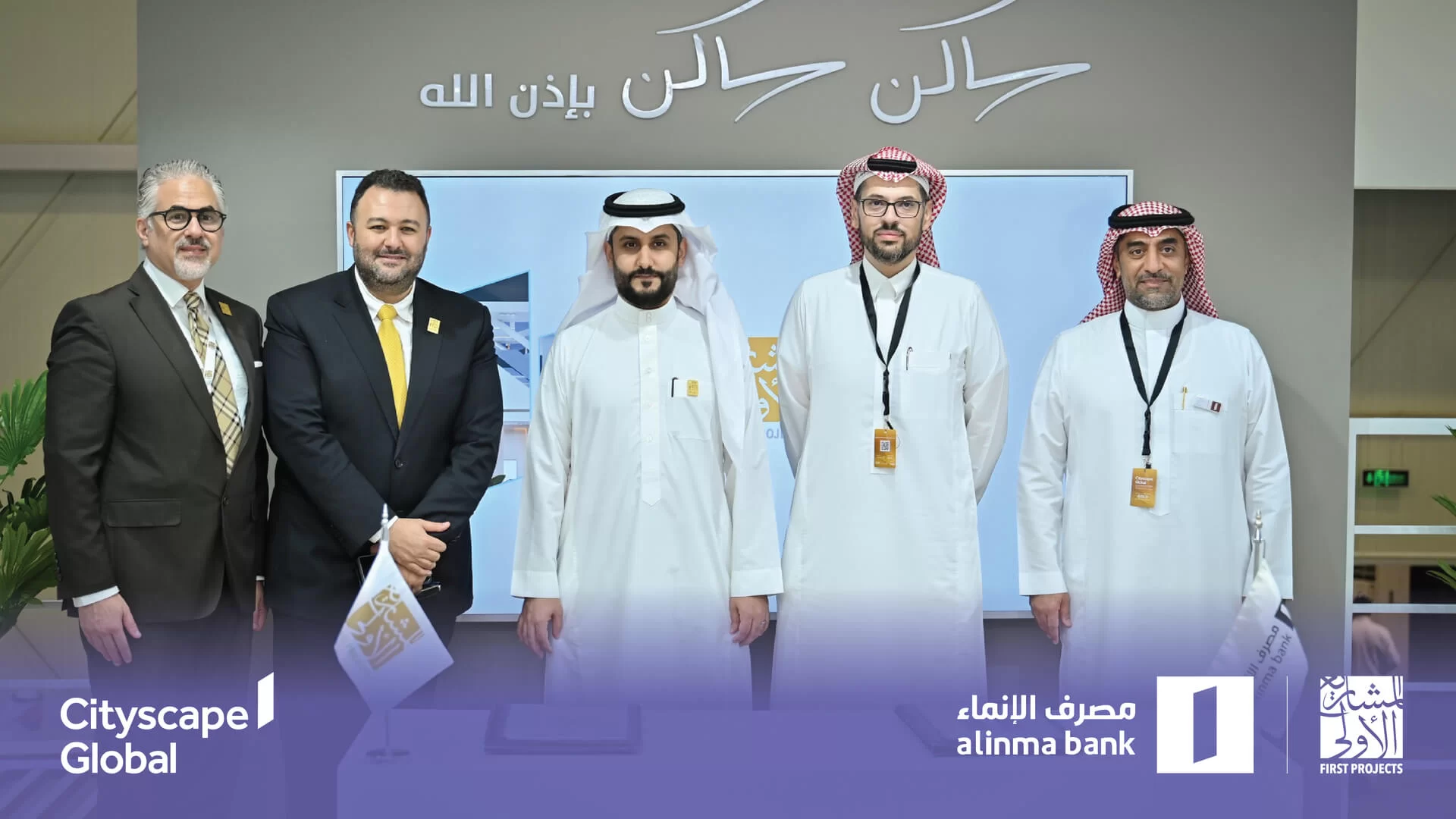 A marketing agreement was formally signed between First Projects Company and Alinma Bank on Wednesday, November 13, 2024, during the Riyadh Cityscape 2024 exhibition.