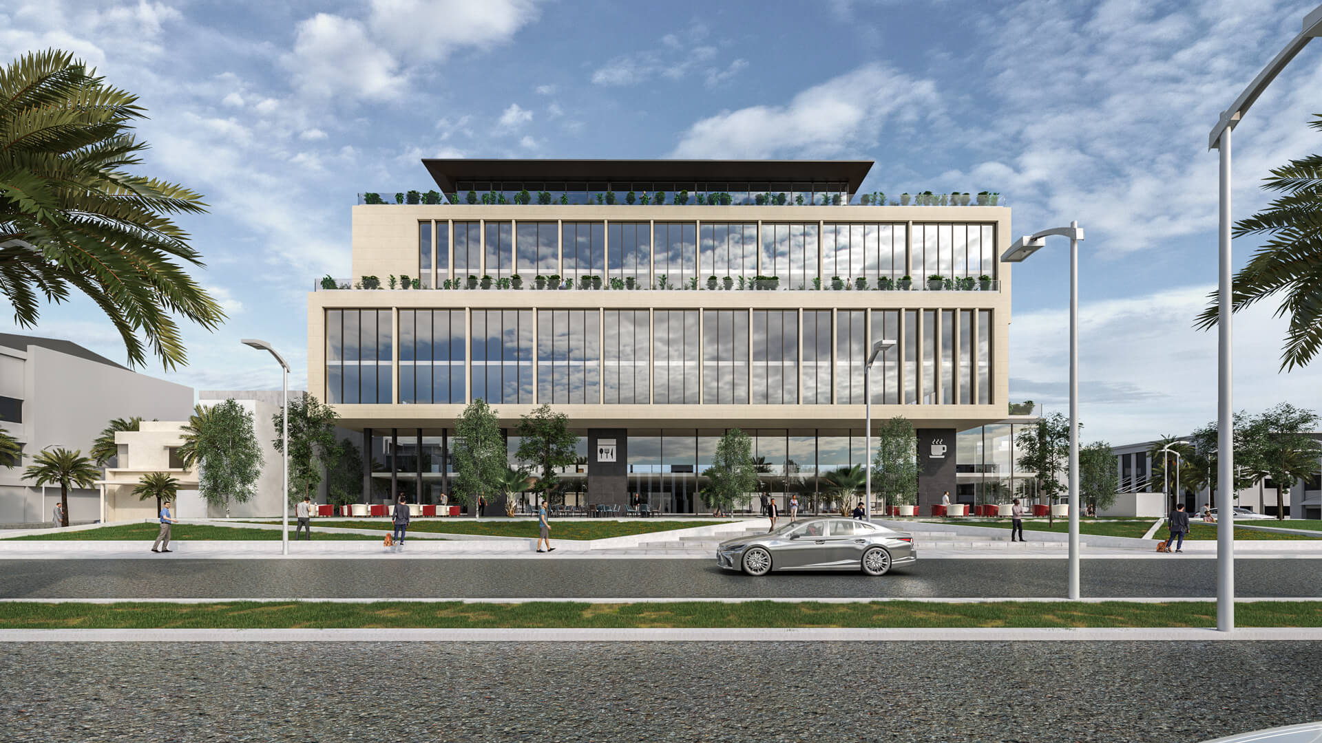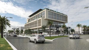 المشروع عبارة عن مبنى مكوّن من 5 طوابق مع دور أرضي وملحق، على أرض مساحتها 4500 متر مربع. ويقع على طريق الملك عبدالله بن عبد العزيز في مدينة الرياض. يحتوي المشروع على مجموعة وحدات مكتبية مفتوحة للبيع بمساحات مختلفة، بالاضافة لمجمع مطاعم بالدور الأرضي يتضمن على مختلف الأطباق العربية والعالمية قمنا بتصميم المبنى بطريقة فريدة تسمح لخلق مساحات وكتل معمارية، تمنح المبنى مناطق خضراء وجلسات خارجية تحسن من بيئة العمل–